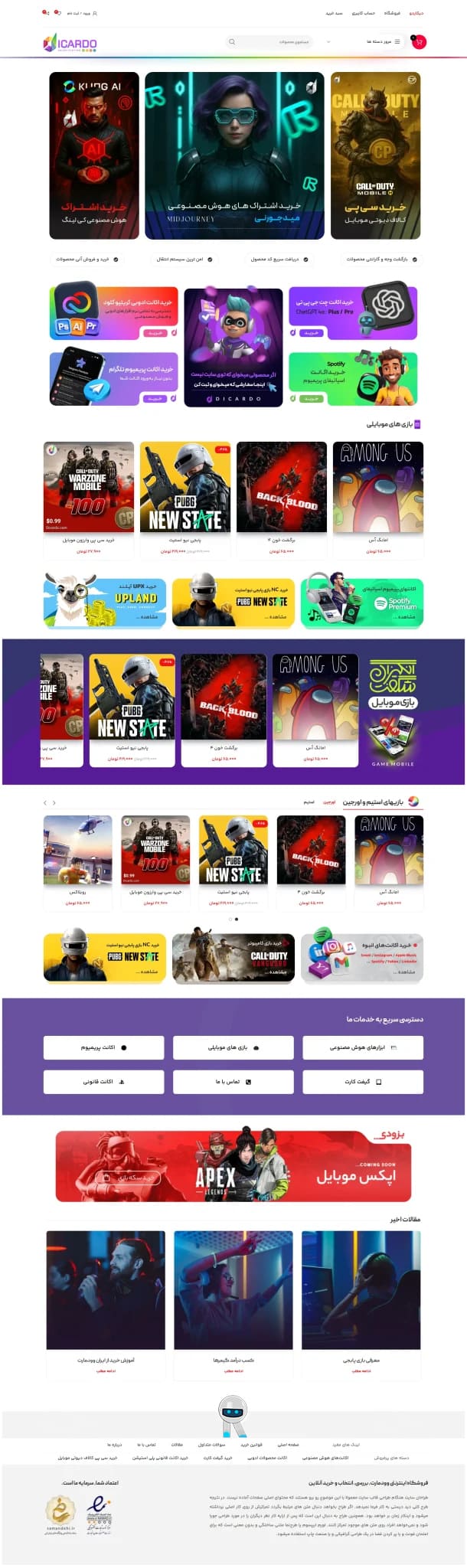ویژگیهای قالب سایت بازی دیکاردو