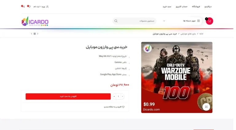 قالب بازی Dicardo | قالب گیمینگ فروشگاهی وردپرس