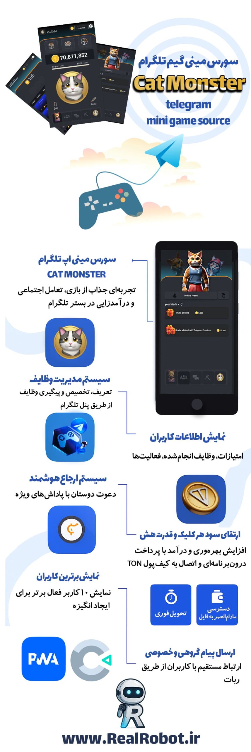 درآمدزایی با سورس مینی گیم تلگرام Cat Monster